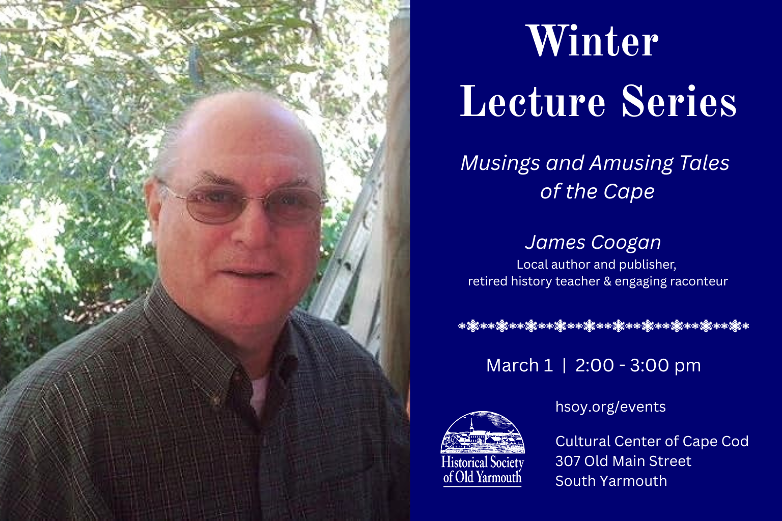 Our next Winter Lecture is on March 1, when Cape native, former history teacher, author, and raconteur James Coogan will entertain us with musings and amusing tales of the Cape. Learn more & purchase tickets to all programs on our Events page or click the image below.
