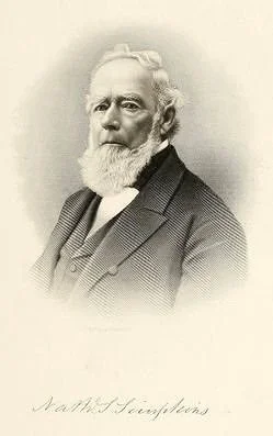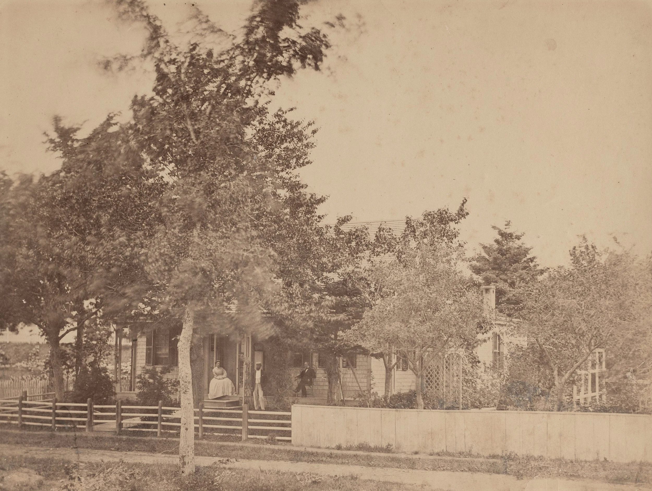 The front part of the house was built on the east side of what is now the Yarmouth Port Common, by Captain Edmond Hawes, probably about 1820. At the time the Common was a swamp on the north end and a shallow, clay bottomed pond on the south end. Little is known about Edmond except that he died in 1831. The house was sold to Nathaniel Stone Simpkins on April 5, 1830. He was born in Brewster in 1796 and married to Eliza Jane Thacher, daughter of Henry Thacher who lived in the handsome house at the top of the Common. They had six children and Eliza died in 1836, shortly after the youngest, George, was born. In 1852 Nathaniel married Mary Sears. During his lifetime he improved and remodeled the house, adding what is now the middle portion, and planted trees and shrubbery, including boxwood transplanted from the house next door. Nathaniel was a prosperous businessman in Boston, as well as on the Cape. He founded the Yarmouth Register and Barnstable County Advertiser, and was a director the First National Bank of Yarmouth Port and of the Cape Cod Railroad. He was also a civic leader serving in State House of Representatives and involved in the establishment of schools, the New Church and the Yarmouth Port Library. We don’t know if he lived full time on Strawberry Lane, but he spent his old age there. His second wife, Mary, who was twenty one years younger, died in 1886, and he died in 1887. His youngest son George took possession of the house.